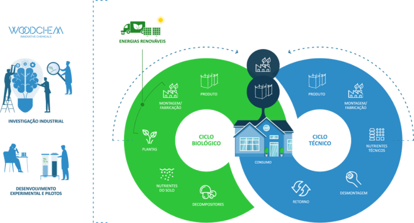 A WOODCHEM é uma empresa de base tecnológica que tem como objectivo ser uma referência mundial na I&D de processos e produtos sustentáveis, levando em consideração conceitos como economia circular, upcycling, cradle-to-cradle e produtos de base renovável.